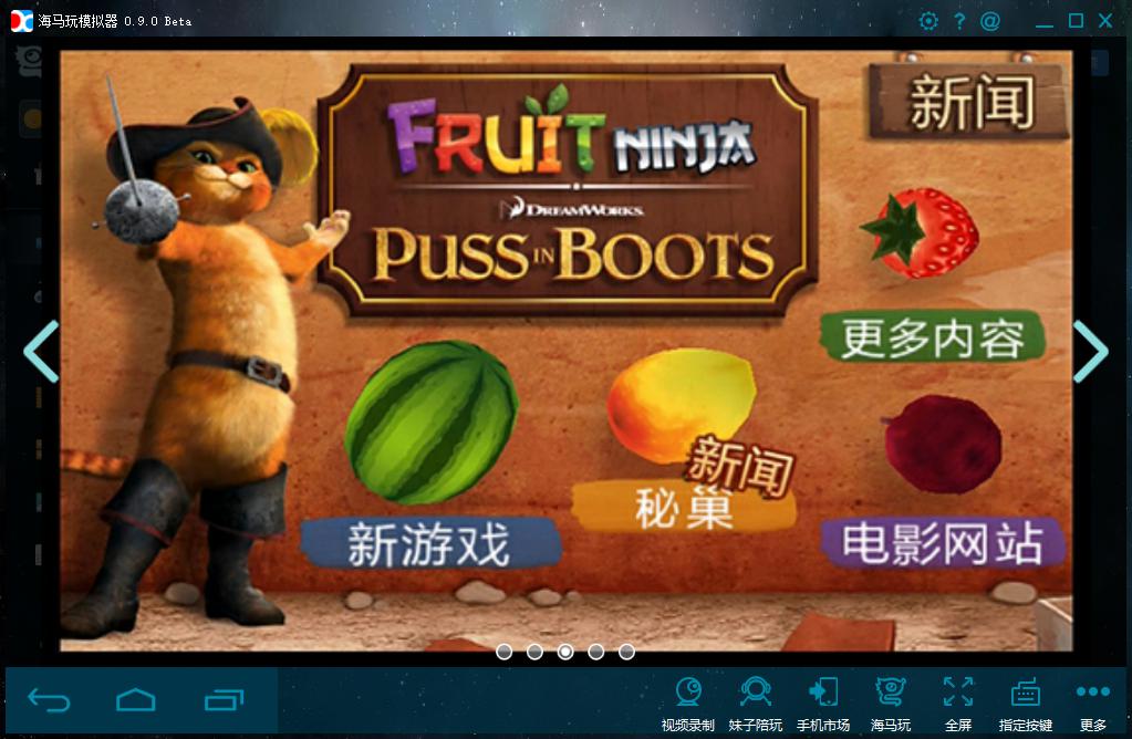 虽然《穿靴子的猫》并不是一部非常大热的电影,但它的特别篇《萌猫三剑客》却堪称萌物史上的巅峰!因此小编不得不放出动画原图来,以证明它们绝不是浪得虚名。而在《水果忍者:穿靴子的猫》中,玩家只能够切一切水果而已,并不能实际接触几个萌猫,尽管如此,海马玩模拟器还是提供了最优秀的操作体验——在快节奏的划屏过程中,再也不会被手掌阻挡视线了,因为鼠标就可以模拟出非常真实的划屏操作。